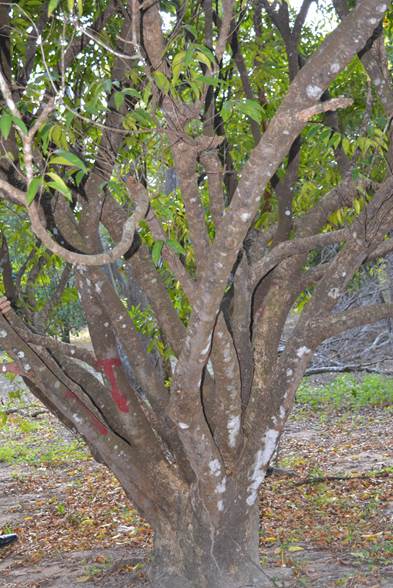 Cành mang quả nhỏ hơn Dó bầu thông thường. Đặc biệt cây phân cành thấp cong queo và nổi các u lồi.