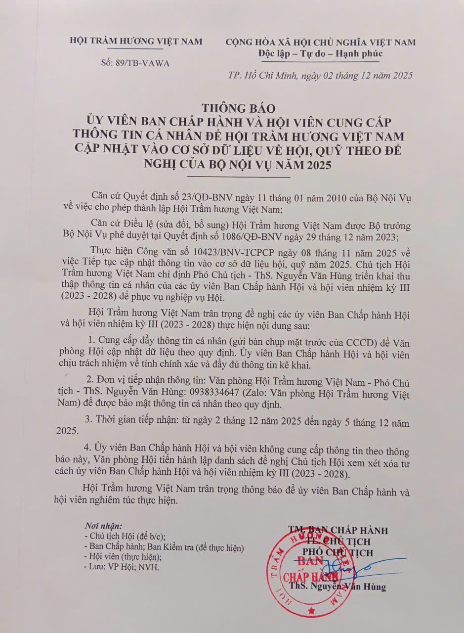 Thông tin & Cập nhật từ Hội Trầm Hương Việt Nam