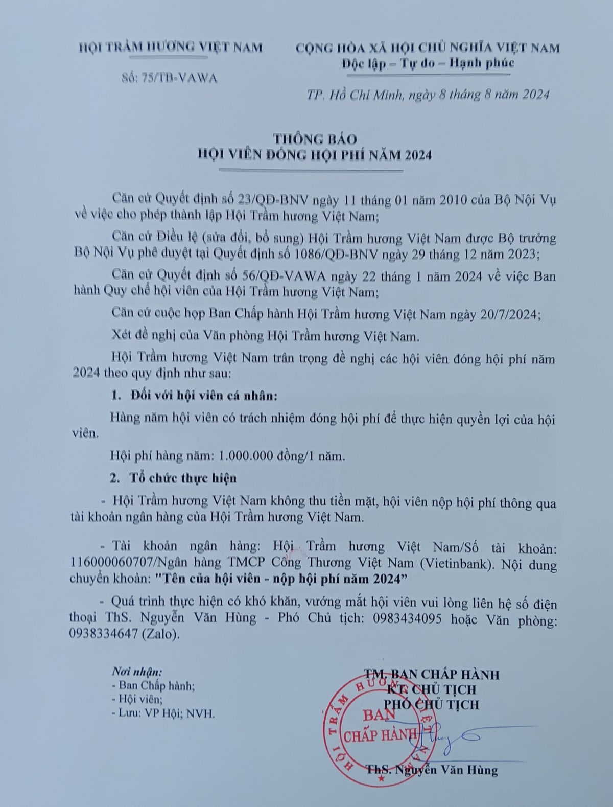 HỘI TRẦM HƯƠNG VIỆT NAM Số: /VAWA
