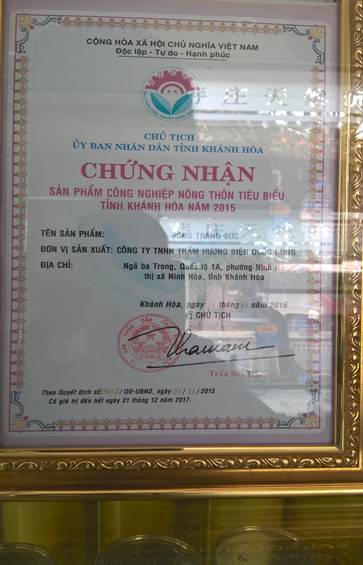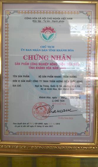 Các chứng nhận các sản phẩm trầm hương tiêu biểu |