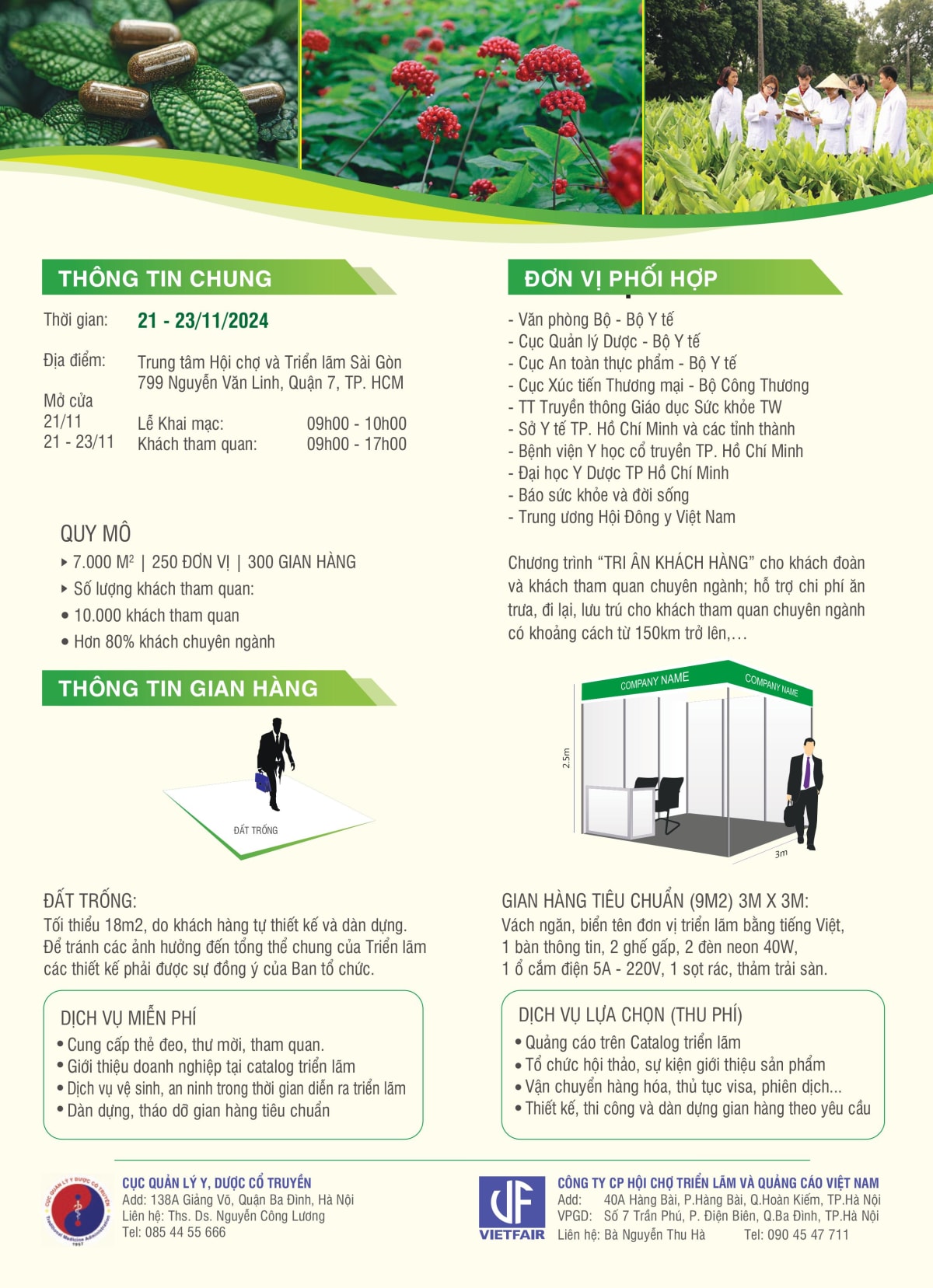 Mọi thông tin chi tiết xin liên hệ Bà: Nguyễn Thu Hà 0904547711 Ban Tổ chức Hội chợ Dược liệu, Y Dược cổ truyền và các sản phẩm từ dược liệu.