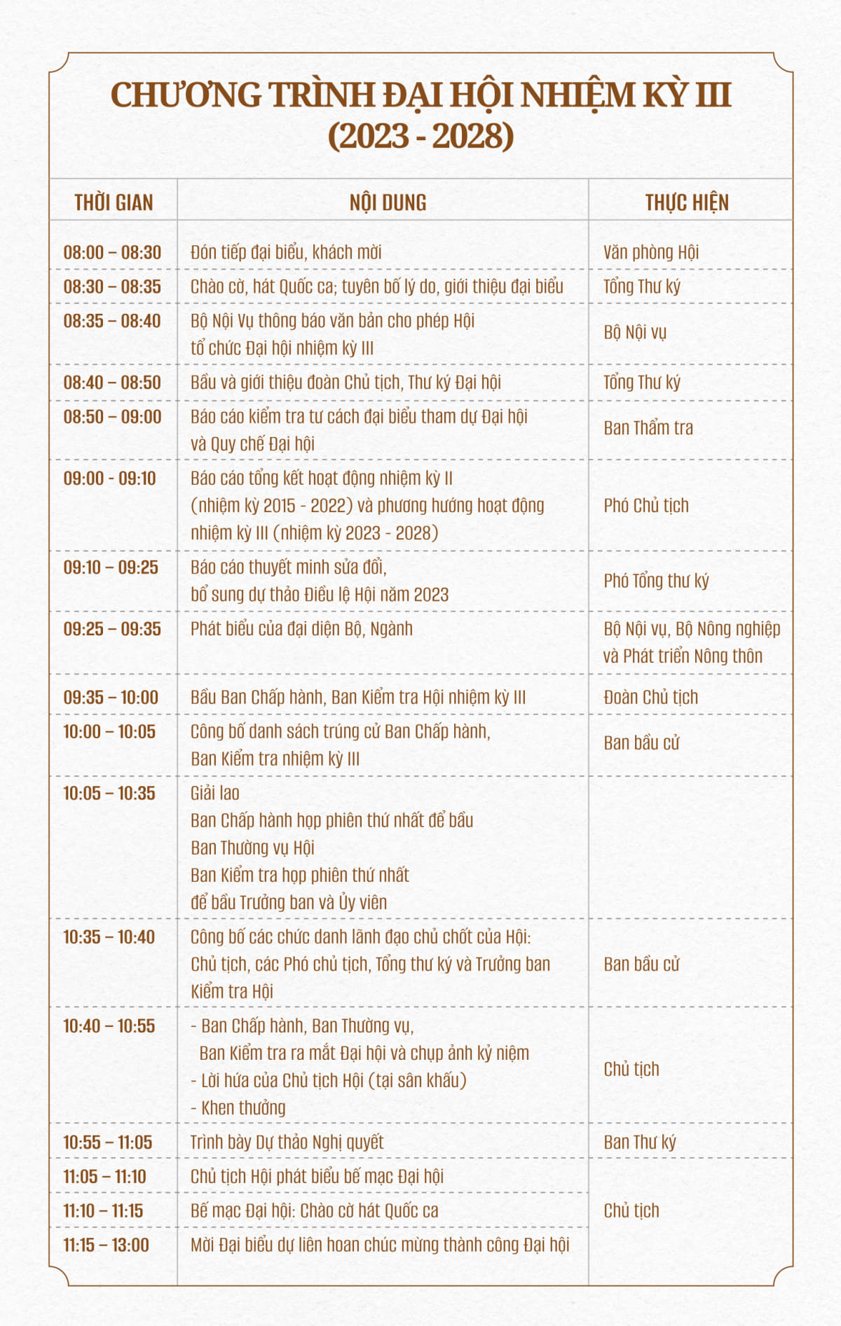 Được sự cho phép của Bộ Nội Vụ và Bộ NN&PTNT Việt Nam. Sáng thứ bảy ngày13/05/2023 Hội Trầm Hương Việt Nam sẽ tổ chức Đại Hội nhiệm kỳ III năm (2023-2028), nay BTC Đại Hội trân trọng thông báo và kính mời tất cả UVBCH và Hội Viên Hội Trầm Hương Việt Nam về tham dự đại hội vào lúc 8h sáng thứ bảy13/5/2023 tại lầu 5 sảnh Ruby nhà hàng ADORA DYNASTRY số 1A đường Tôn Thất Tùng,phường Phạm Ngũ Lão,quận 1,TPHCM.